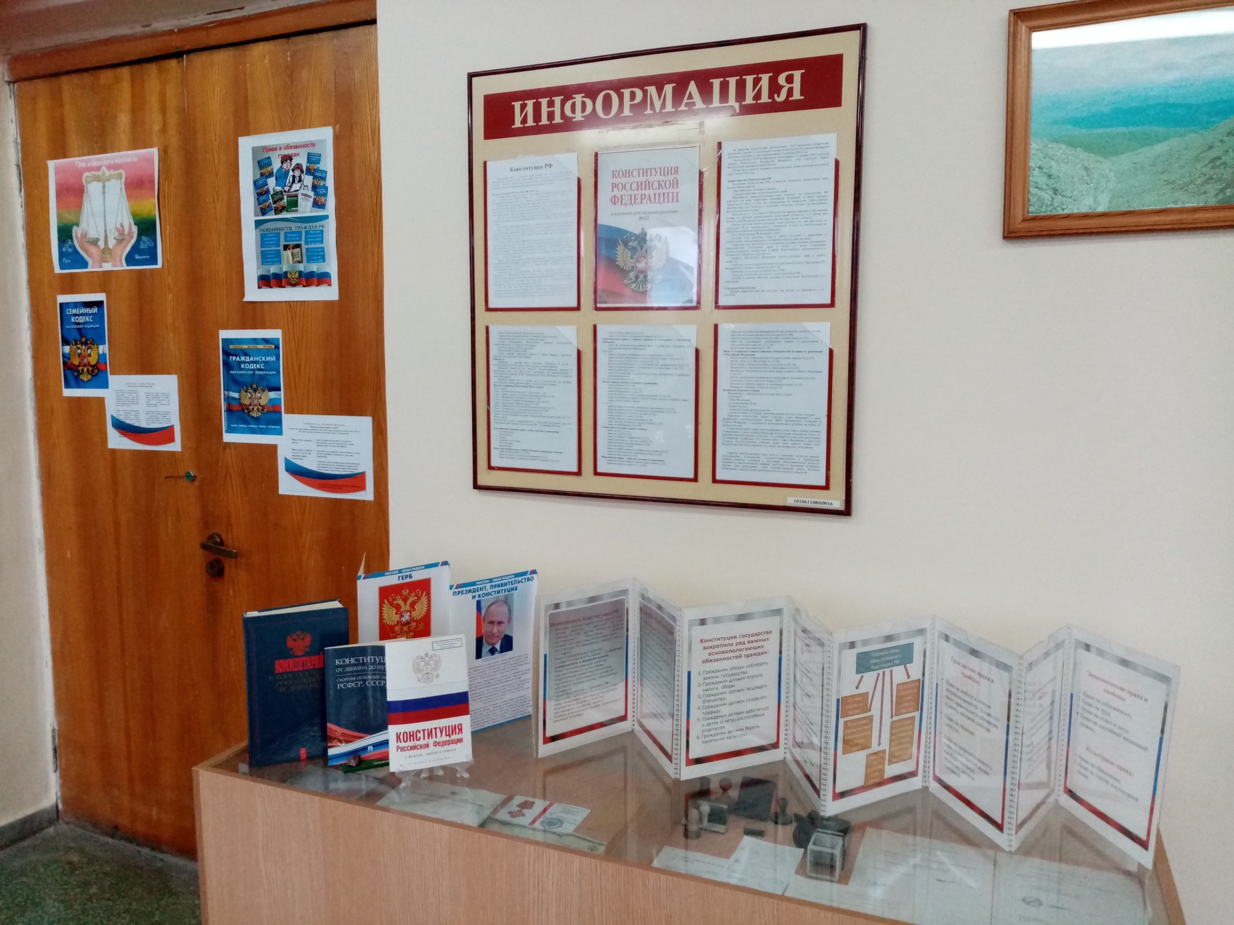 В преддверии праздника в Алапаевском городском суде оформлена тематическая выставка, посвященная Дню Конституции Российской Федерации. Выставка содержит информацию о действующих ранее Конституциях и интересные фаты о Конституции Российской Федерации. Для изучения предоставлены сборник основных законов РСФСР, СССР, РФ под названием «Конституция от Ленина до Путина» и Комментарий к Конституции РФ. ![]() |